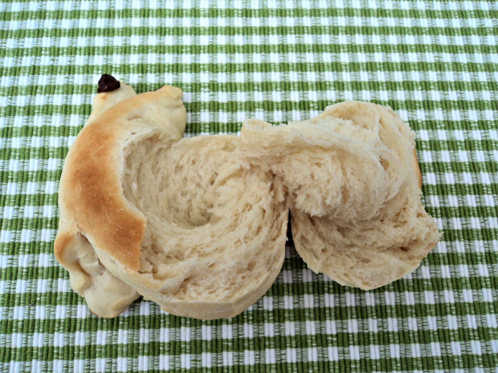 - Calentamos el horno a 220º , volvemos a pintarlos con el huevo batido. Ponemos las gotas de chocolate semejando los ojos. Horneamos hasta que estén dorados pero no en exceso para que el pan no se seque y deje de estar blandito, unos 6 minutos.