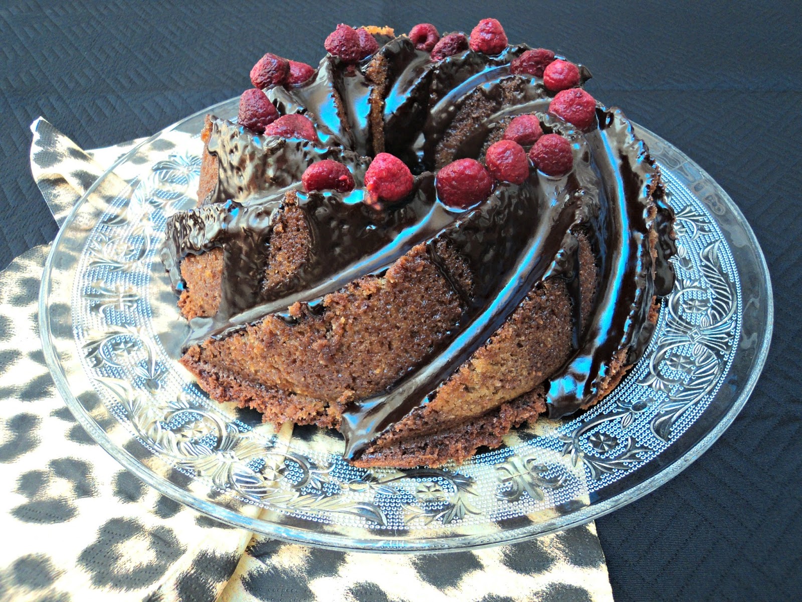 Cuando el bundt esté frío, ponemos la rejilla con él sobre una fuente y vertemos la cobertura CALIENTE para que lo empape pero a chorretones que queda más buena.