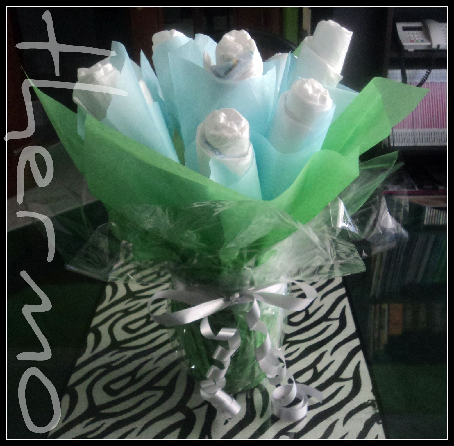 Con pañales y papel turquesa que es su color favorito debería de quedar bien ...