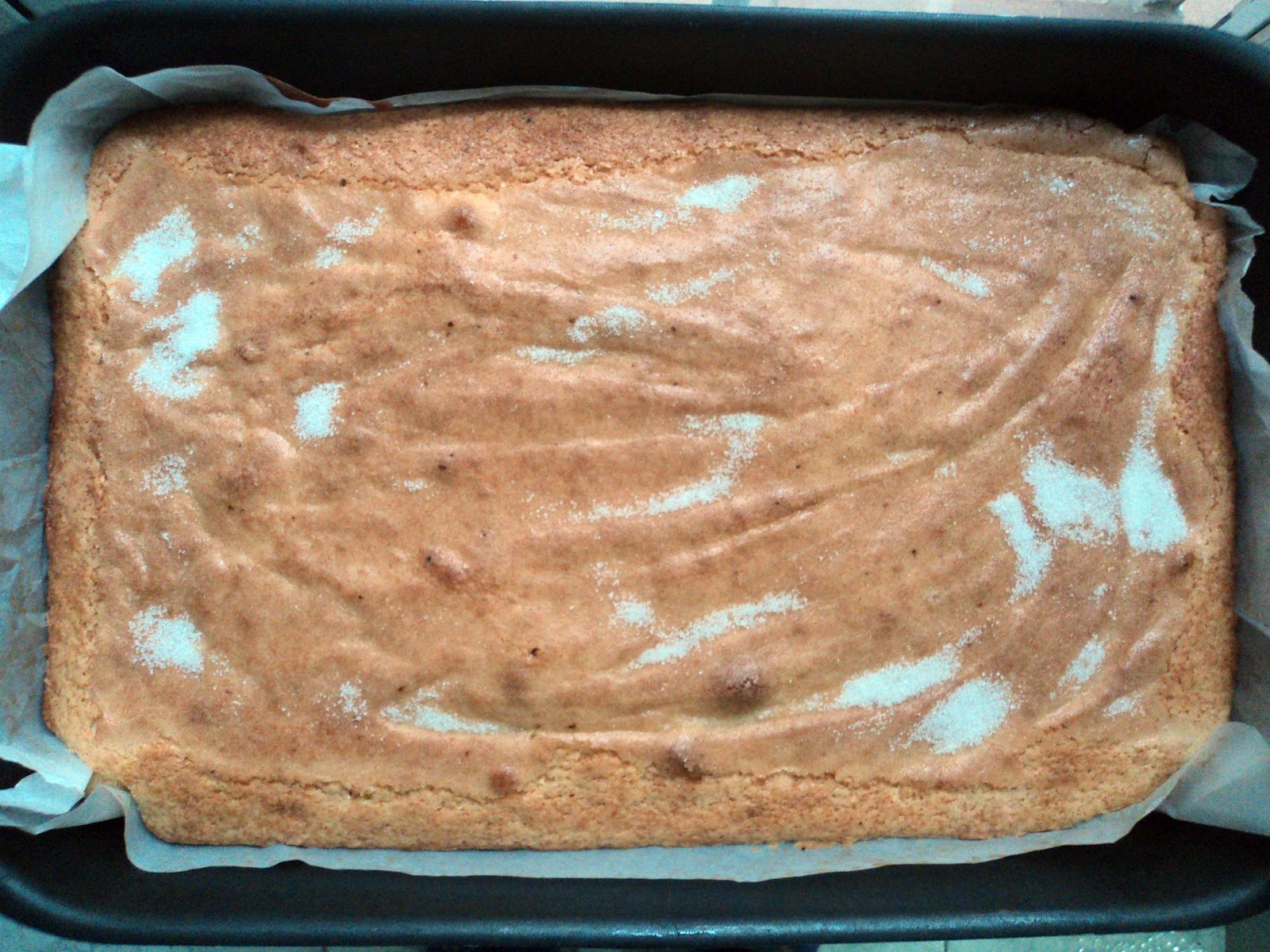 - Espolvoreamos toda la superficie con azúcar, bajamos la temperatura del horno a 180º y horneamos durante 30 minutos.