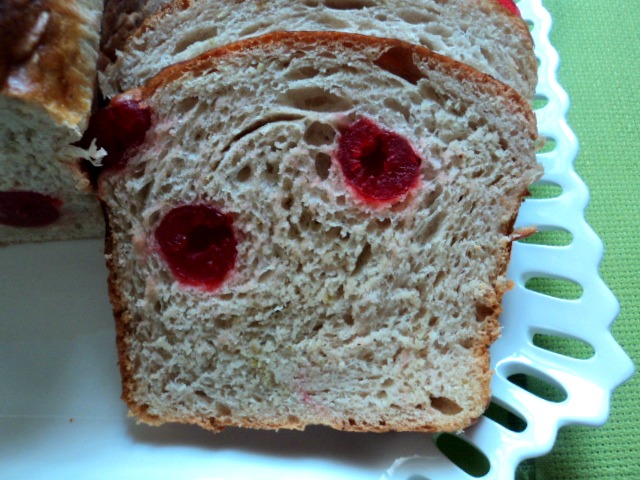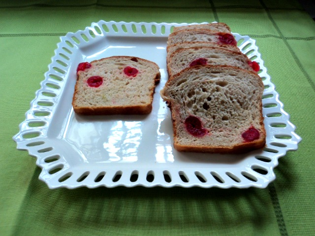 Este pan habrá que probarlo!!. Me ha encantado el corte, con las cerezas, mmmm.