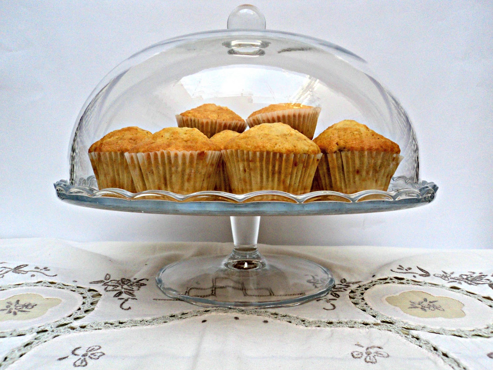 Las magdalenas que tienen que saber a gloria, el mantel monísimo, la cúpula también y las fotos de diez.