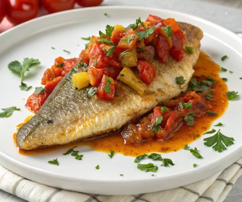 Es un plato muy apetitoso, pescado y salsa se ve muy hermoso,abrazos.