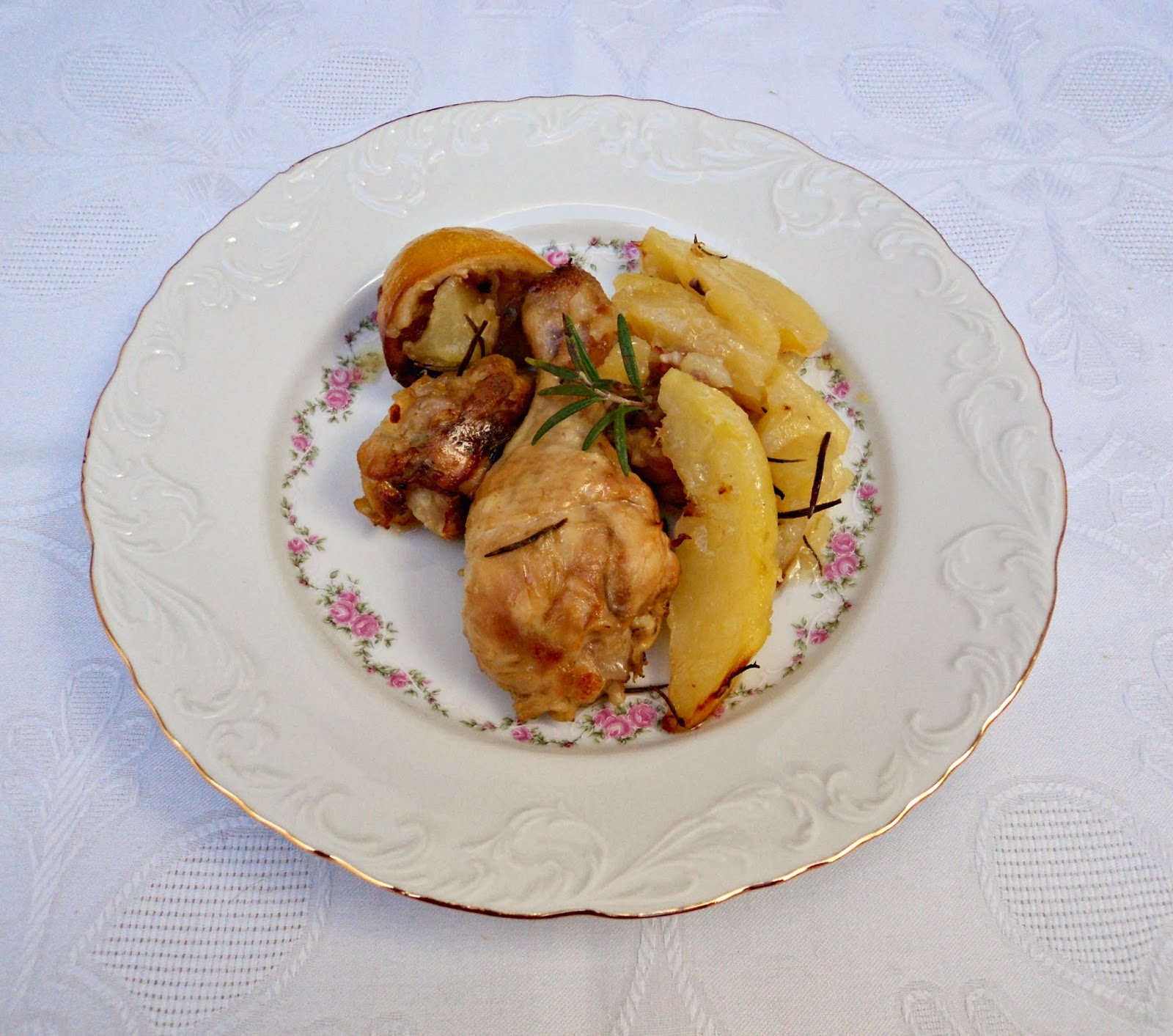 Un pollo bien rico, sencillo pero con un olor seguro que bien bueno... y ese acompañante de patatas es perfecto.