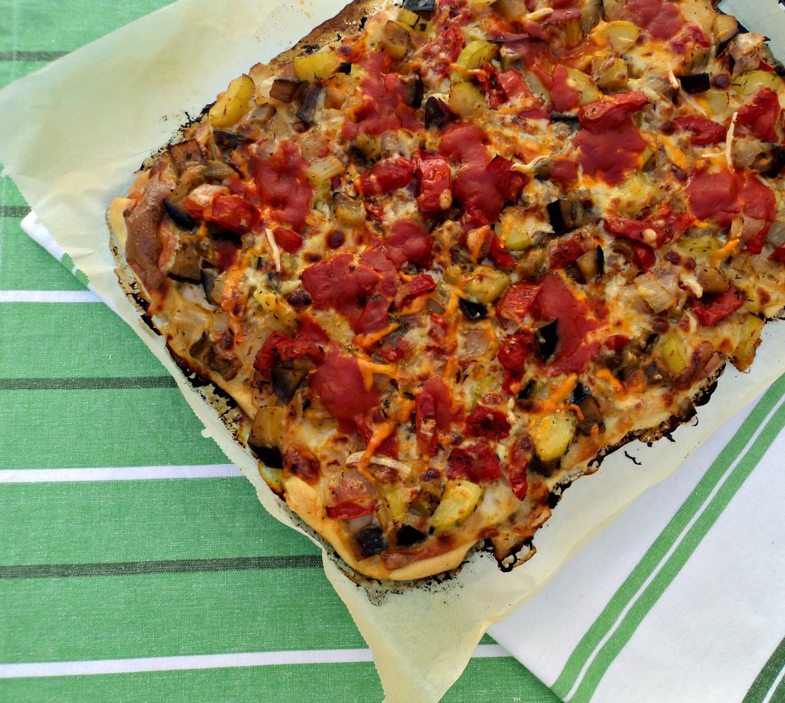 Que pinta más rica tiene esta pizza, con todas esas verduras seguro que esta deliciosa, me apunto a un trozo, uuummm, que buena. Un beso.