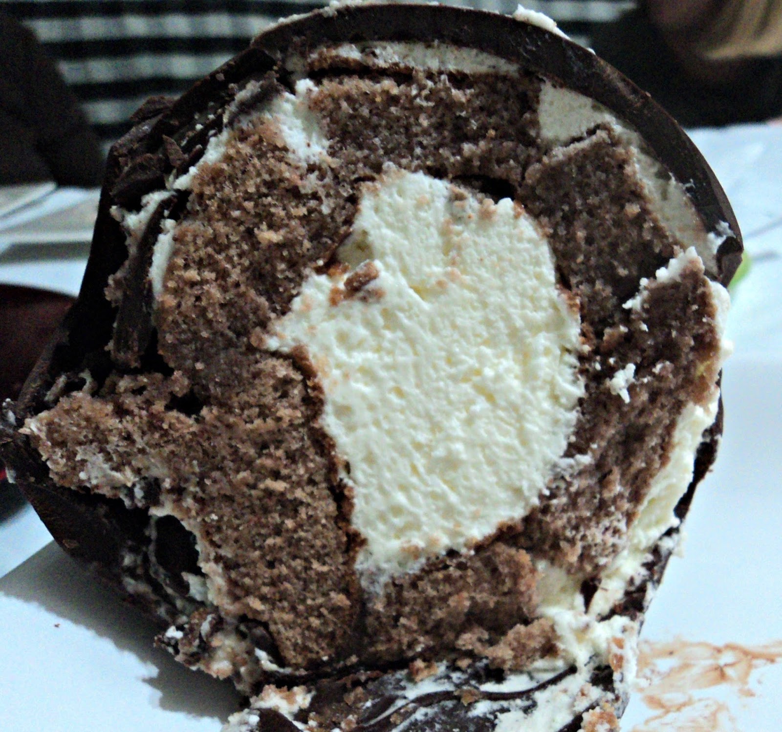 - Cubrimos todo el hueco central con más nata pero cuidando de no llenar en exceso, aún queda por poner una capa de bizcocho y de chocolate para cerrar el hueco que hicimos.