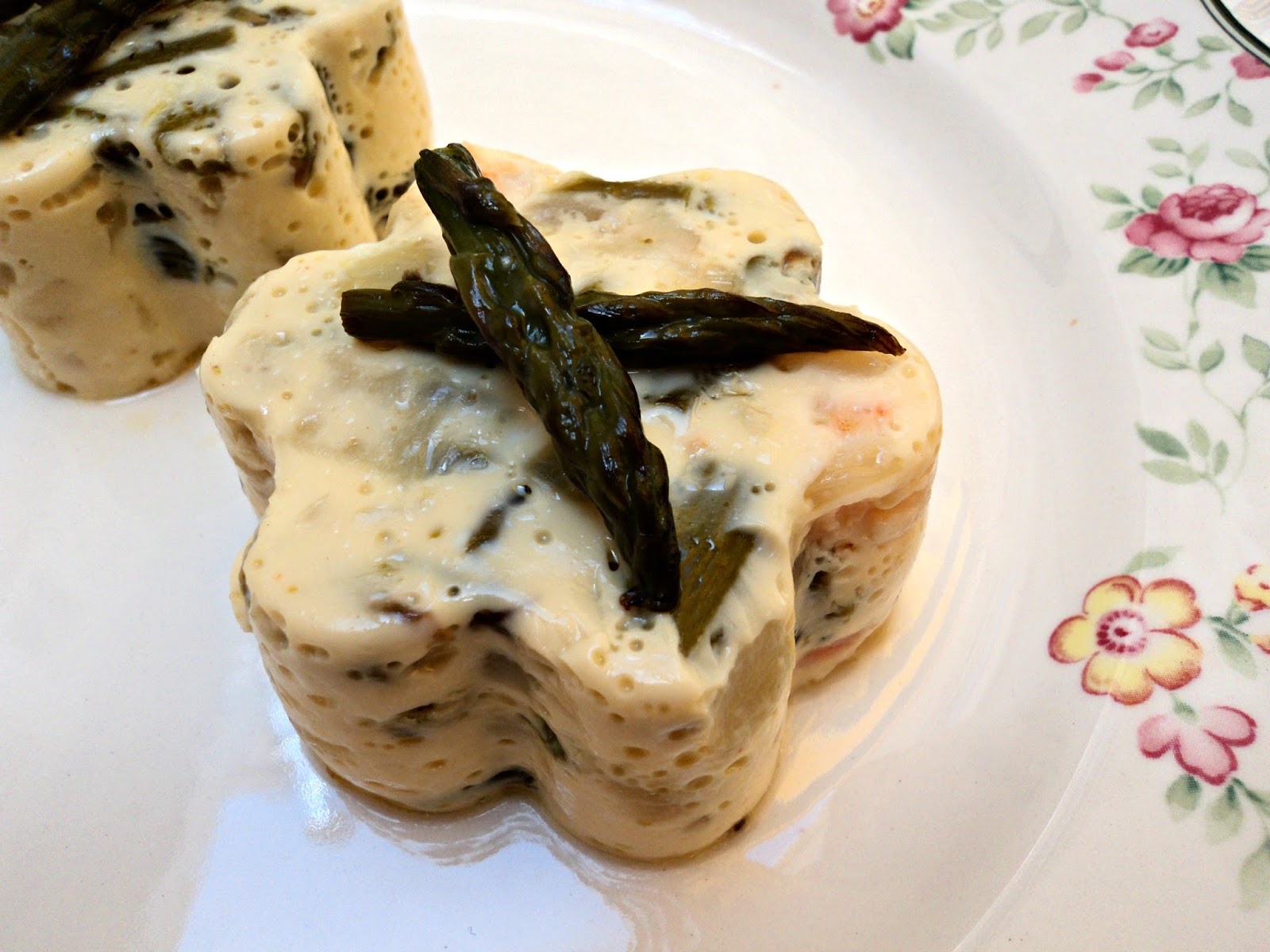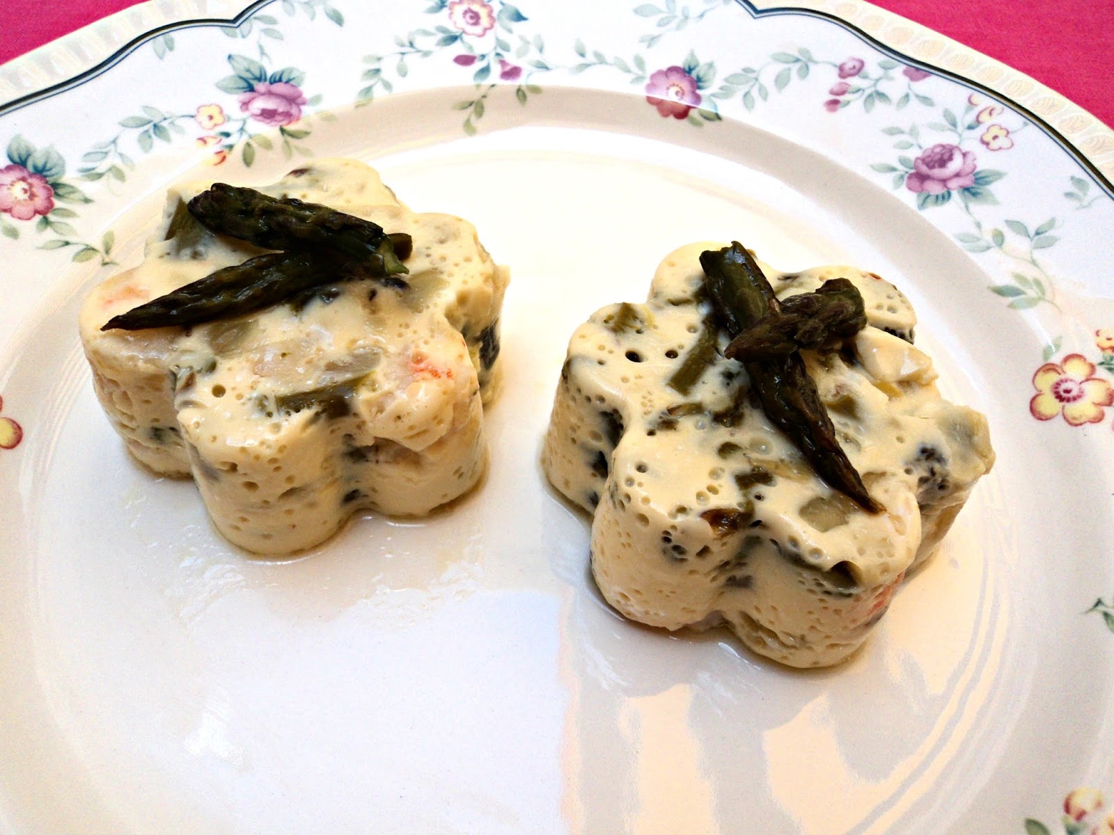 Los flanes de espárragos me gustan, si ya añades gambones, vaya delicia nos traes y muy bonitos con estos moldes, aún se apetecen más.