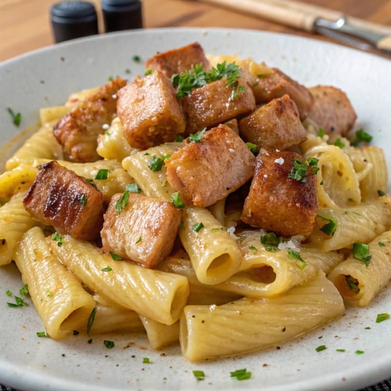 La receta del lomo al ajillo la tenéis en los ingredientes, hagáis o no esta pasta, os recomiendo que le echéis un vistazo. Perfecto para la cena sobre una rebanada de pan tostado con alioli por ejemplo.